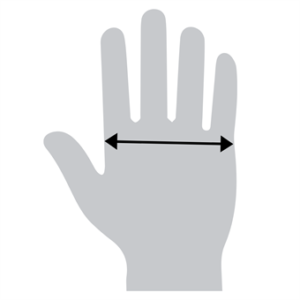 | Storlek | Mått över handen |